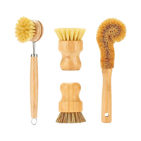 Набор щеток для мытья посуды SAMEBUTECO из бамбука, 4 предмета, для чистки кухни, мытья посуды, кастрюль, сковородок, бутылок, с натуральной щетиной